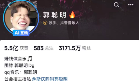 郭聪明,1998年出生,出生于内蒙古包头市。目前,账号粉丝达3000多万。2017年12月,因发行《没日没夜》《有故事的人》《没日没夜》等作品进入演艺圈。